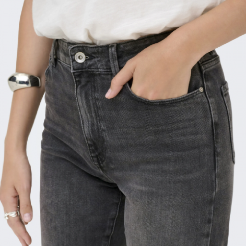 1570Calça de ganga Slim Fit - Cintura Alta - Denim Cinza Escuro