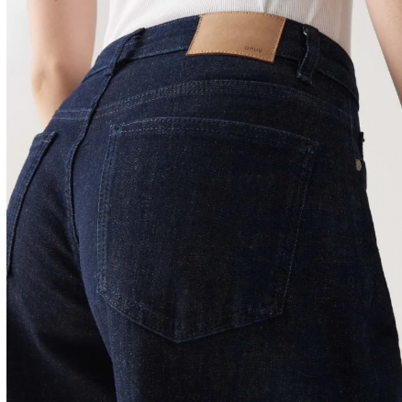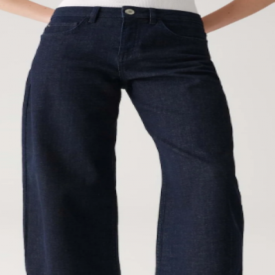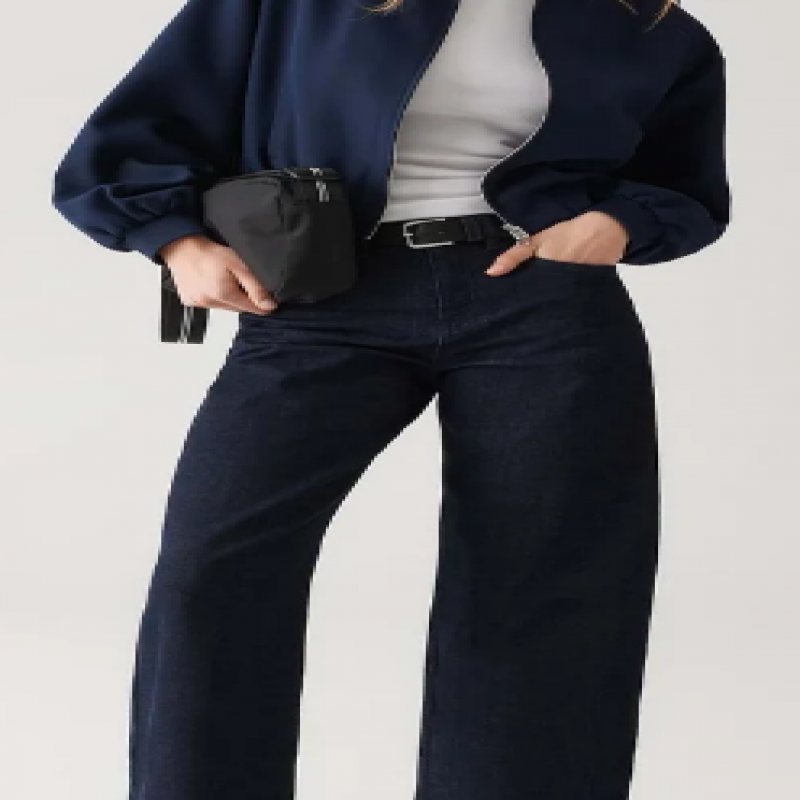 Ajuste de cano médio no tornozelo - perna larga - azul escuro lavado