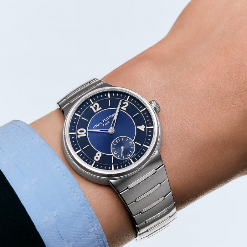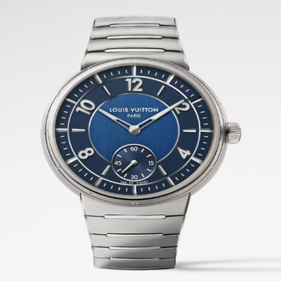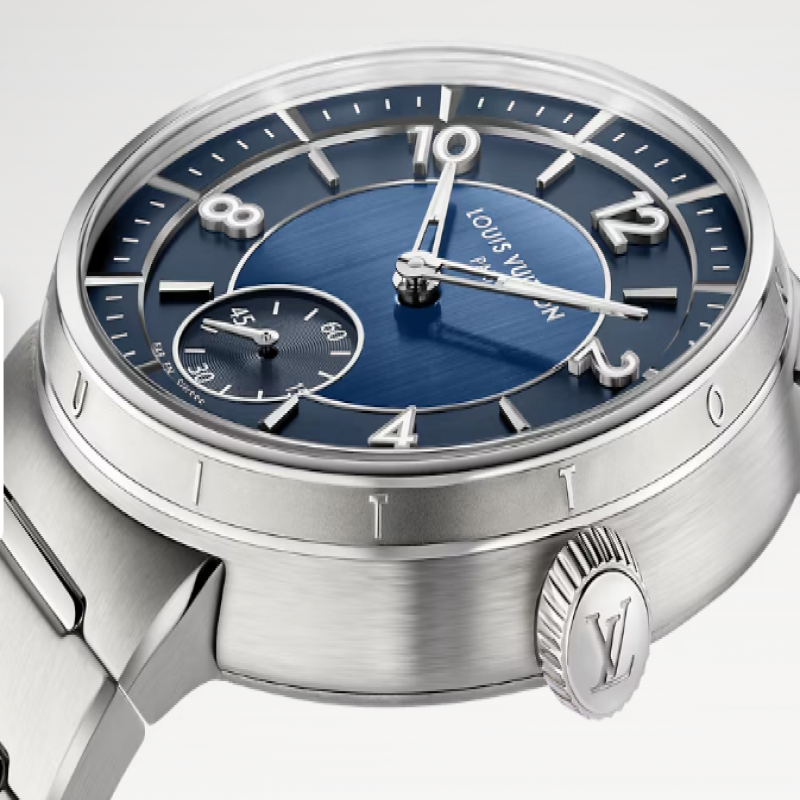 Com sua singular pulseira de metal integrada e caixa mais fina, o Tambour Automático de 40 mm em aço revisita o design icônico da Louis Vuitton com um espírito chique e esportivo. Acabamentos contrastantes e detalhes refinados conferem sofisticação inegável a este modelo versátil e unissex. Equipado com o novo calibre automático exclusivo LFT023, o relógio ostenta a assinatura "Louis Vuitton Paris, Fab. En Suisse", um símbolo de sua elegância e precisão.