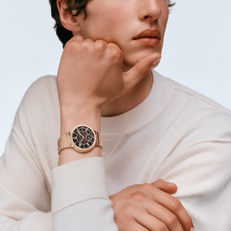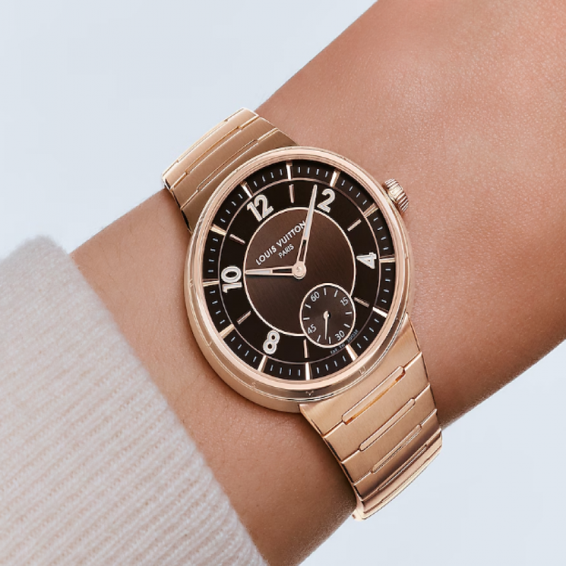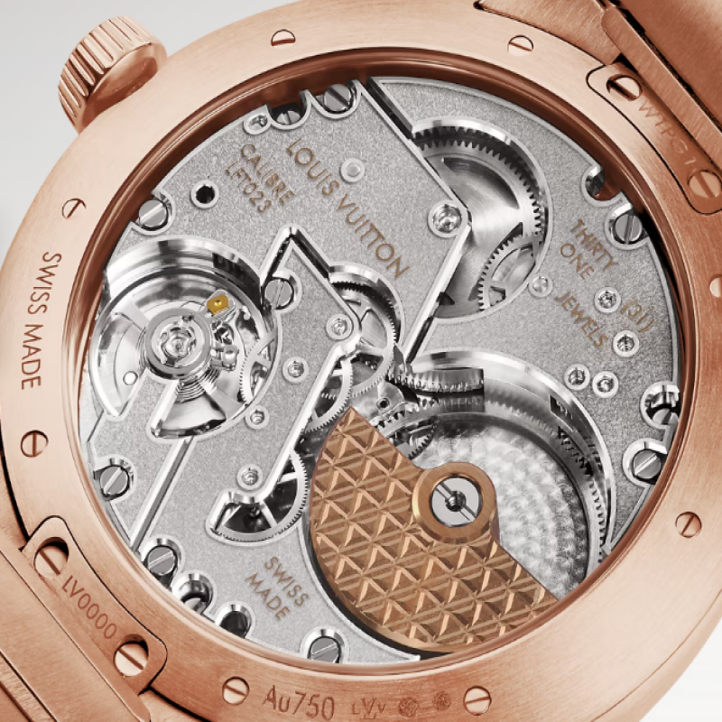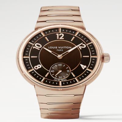 Com sua singular pulseira de metal integrada e caixa mais fina, o Tambour Automático de 40 mm em ouro rosa revisita o design icônico da Louis Vuitton com um espírito chique e esportivo. Acabamentos contrastantes e detalhes refinados conferem sofisticação inegável a este modelo versátil e unissex. Equipado com o novo calibre automático exclusivo LFT023, o relógio ostenta a assinatura "Louis Vuitton Paris, Fab. En Suisse", um símbolo de sua elegância e precisão.